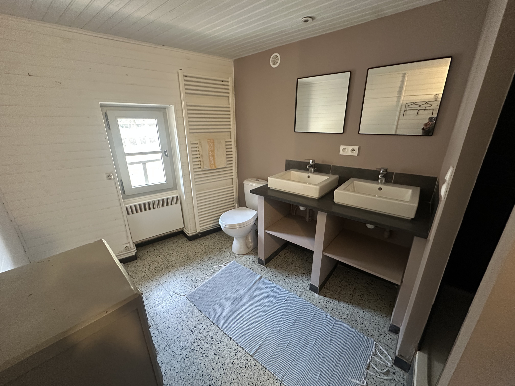Equipements : cheminée bois, double-vitrage, lave-vaisselle, four électrique, hotte aspirante, frigidaire-réfrigérateur, chaudière centrale électrique pour eau et radiateur.