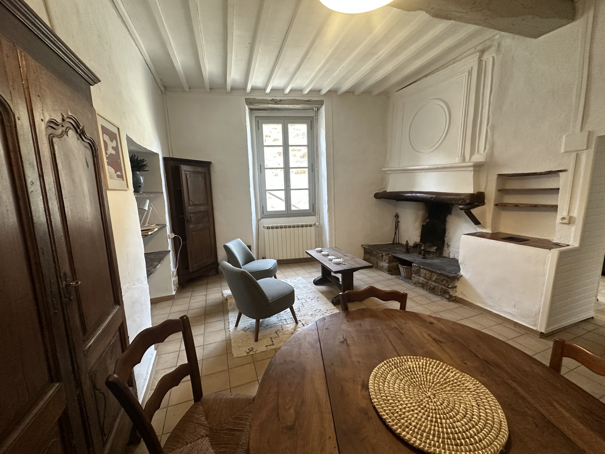 Cette maison de village entièrement meublée et équipée sur 3 niveaux est composée au rez-de-chaussée d'un séjour avec cheminée et d'une cuisine équipée.