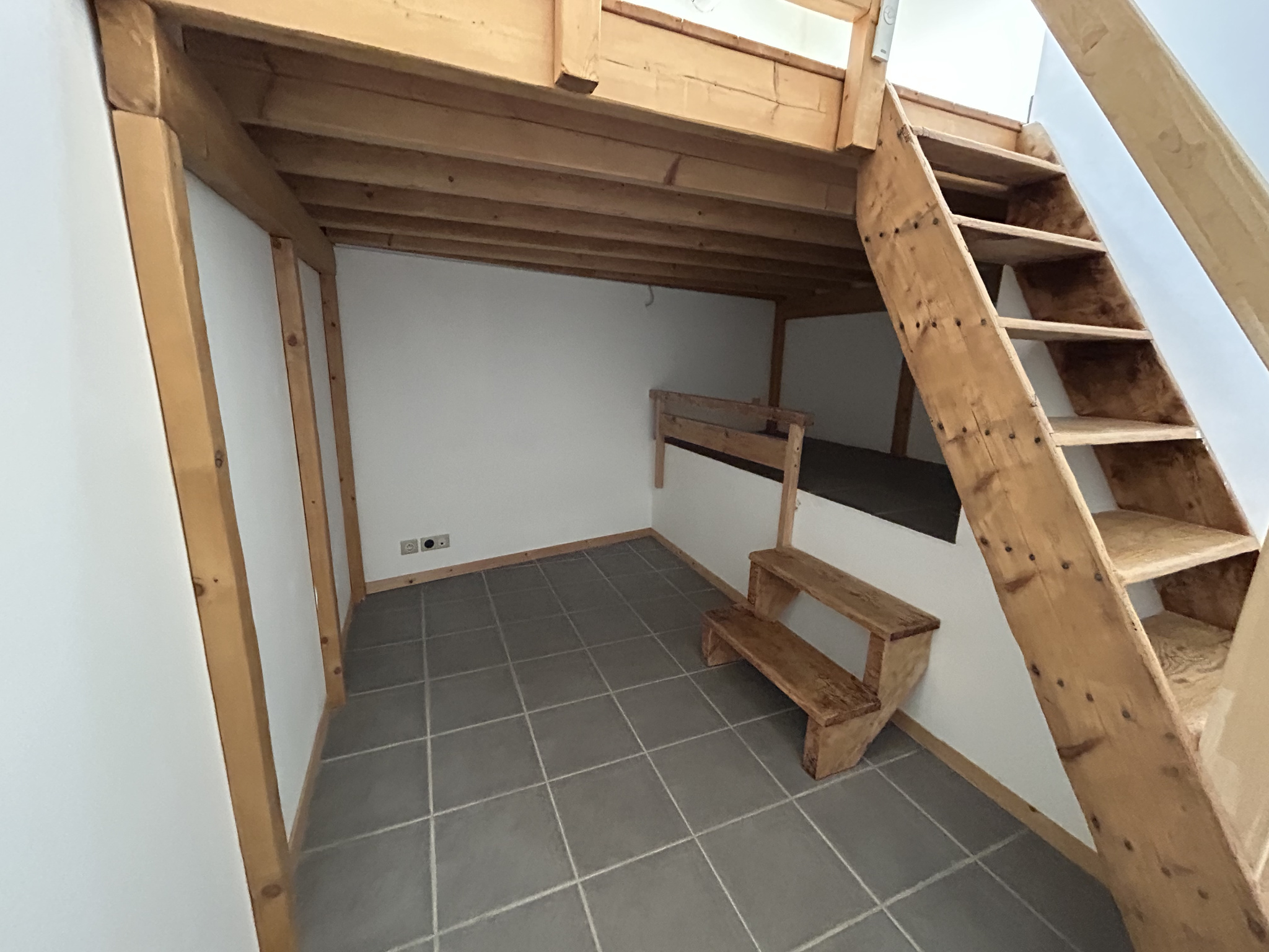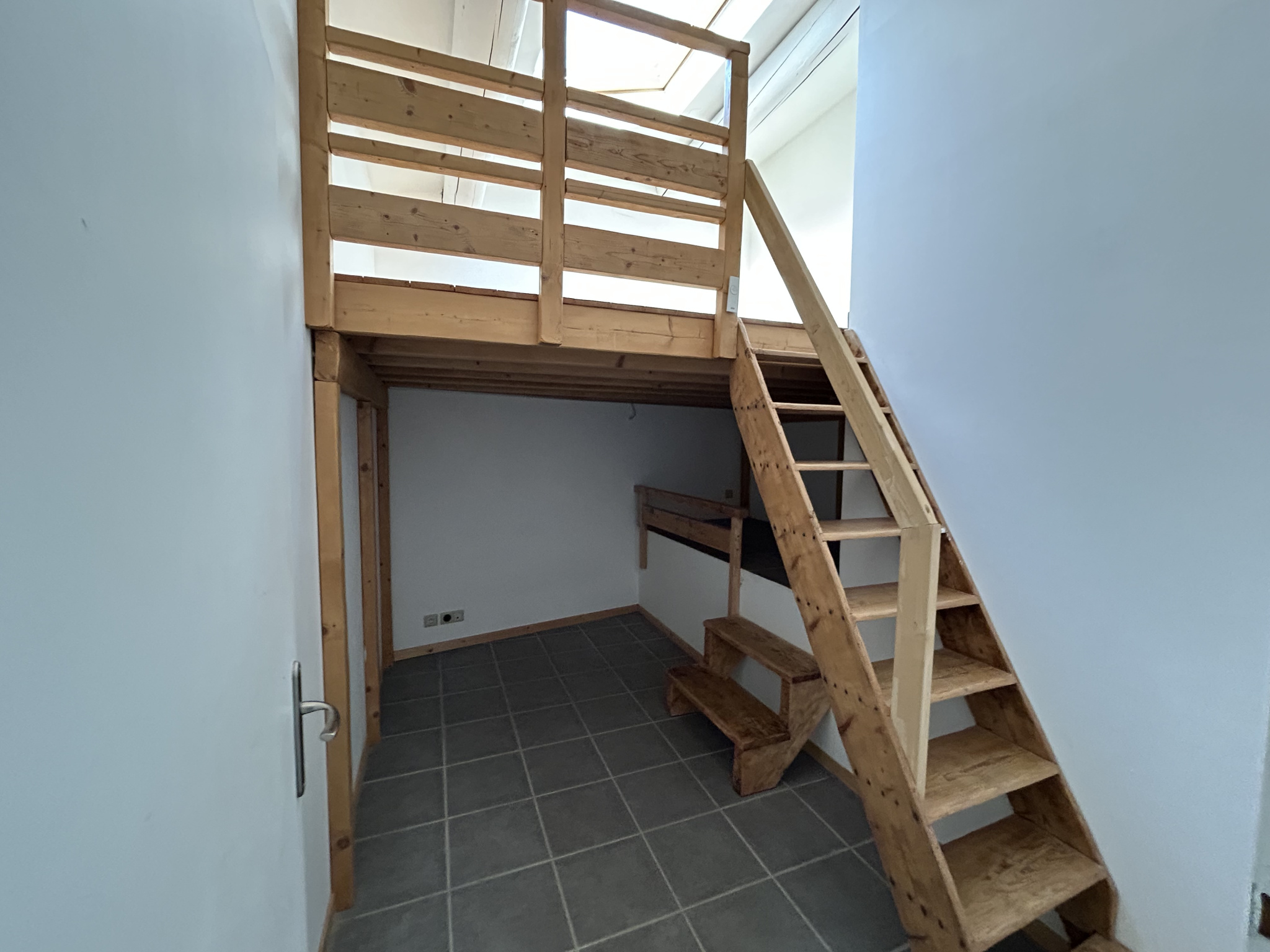 A l'étage: Deux chambres dont une avec mezzanine, une salle de bain avec espace buanderie, un WC