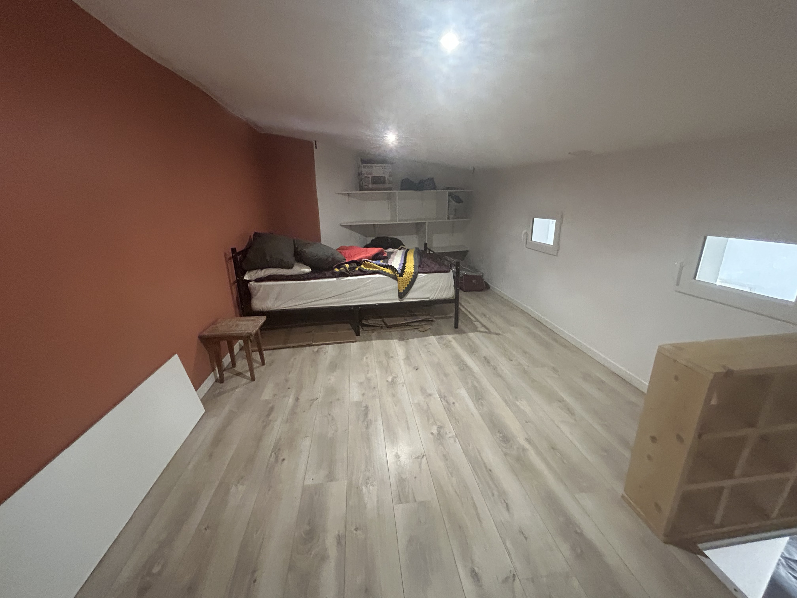 Une pièce en mezzanine complète l’ensemble, idéale pour un coin nuit, un espace détente ou un bureau.
