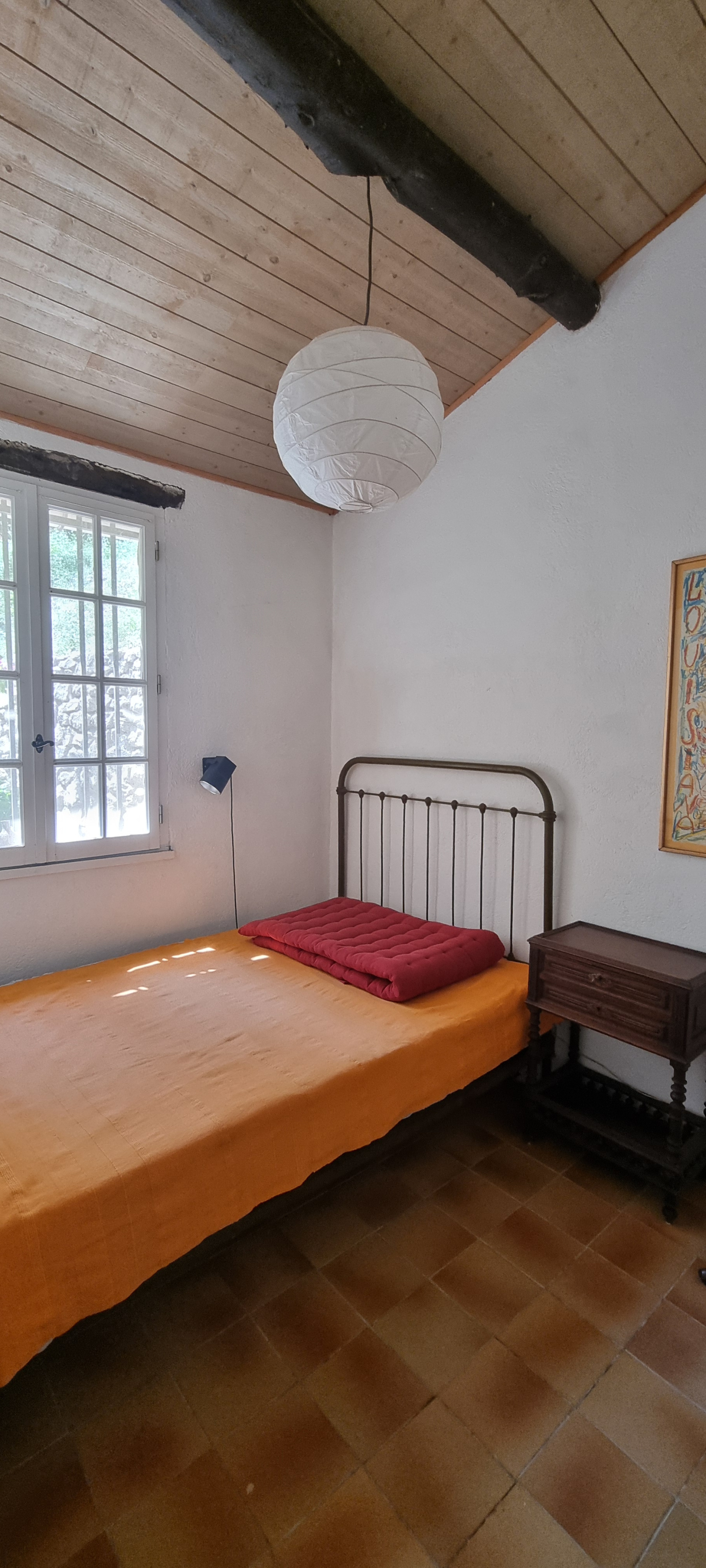 Au rez de chaussée : une entrée commune, un séjour/cuisine donnant sur une cour intérieure, un salon avec cheminée, une spacieuse chambre, un bureau, une salle d'eau et wc.