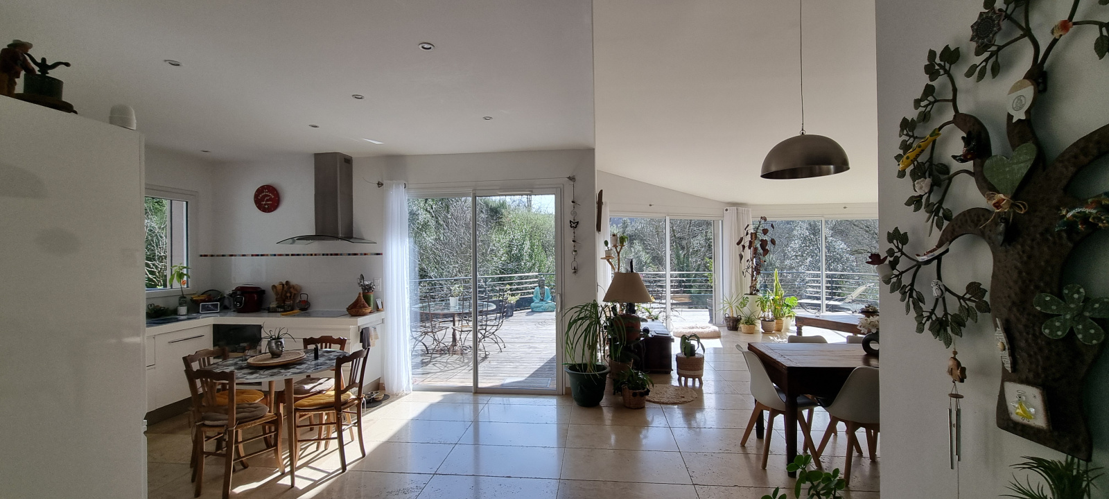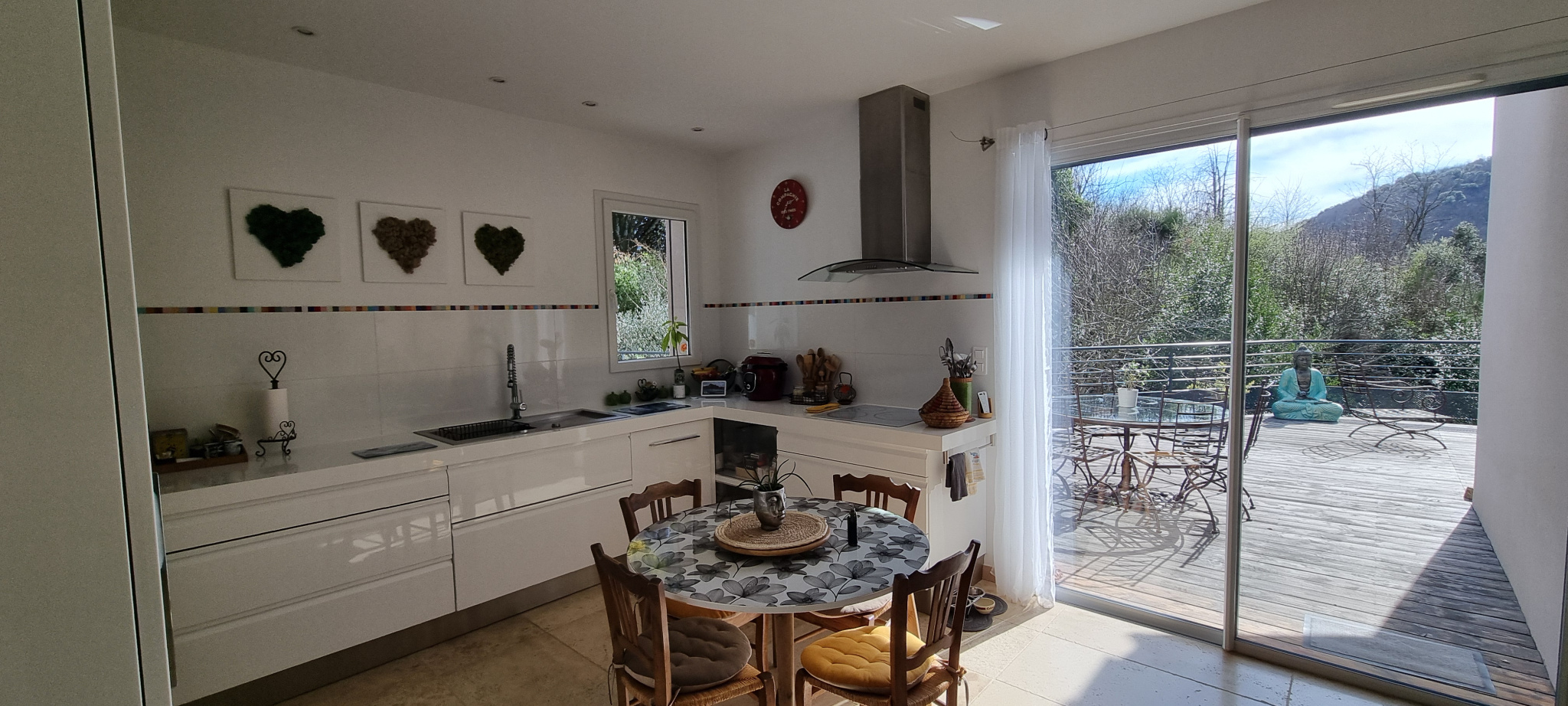 Monoblet (30170)Proche de Saint Hippolyte du Fort, somptueuse maison d'architecte aux beaux volumes, offrant plus de 240m² habitables sur une parcelle de terrain de 6 200 m² arboré, avec potager, bassin à poisson, forage et arrosage automatique, immense piscine 14x4, garage indépendant 32m² avec portail motorisé. La villa comprend un loft en rez de jardin de 60m² avec un espace chambre, une belle salle d'eau/wc (douche à l'italienne) une pièce à vivre avec coin cuisine donnant sur une terrasse couverte de 75m² et accès direct à la piscine. La partie principale est composé d'un hall d'entrée, d'un spacieux séjour/cuisine US équipée de 78m², poêle à granulé, climatisation réversible, buanderie, s'ouvrant sur une vaste terrasse plein Sud avec vue imprenable, 3 belles chambres avec placard, une vaste salle de bains en travertin, wc, une suite parentale de plus de 30m² avec salle d'eau à l'italienne, wc, dressing. Excellentes prestations, matériaux de qualités. Annonce rédigée et publiée par un agent mandataire Cédric ATHANASSARAS, EI, RSAC de Montpellier 450584 719 Les informations sur les risques auxquels ce bien est exposé sont disponibles sur le site Géorisques : www.georisques.gouv.fr.