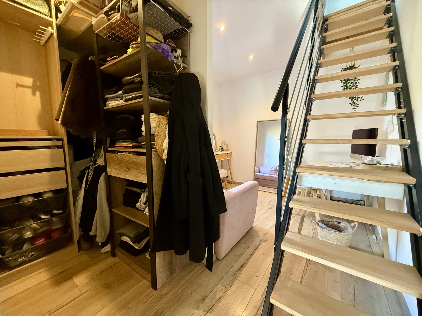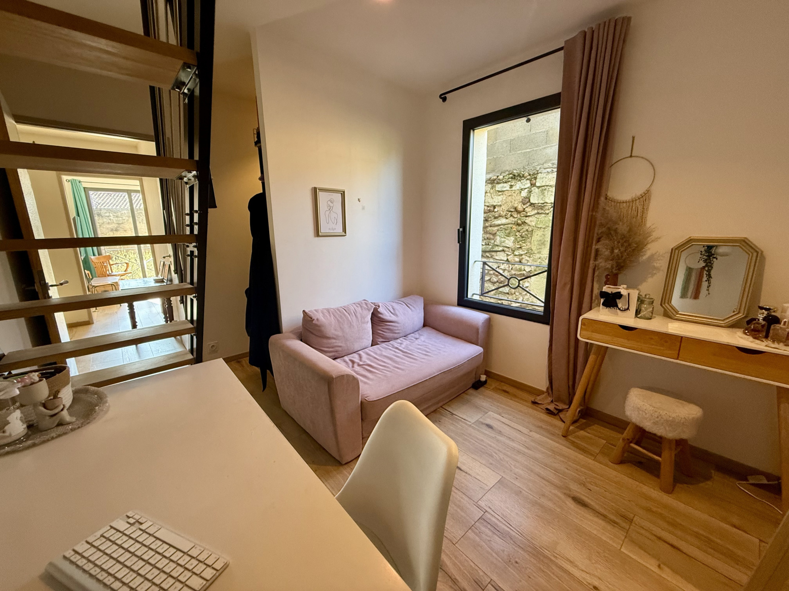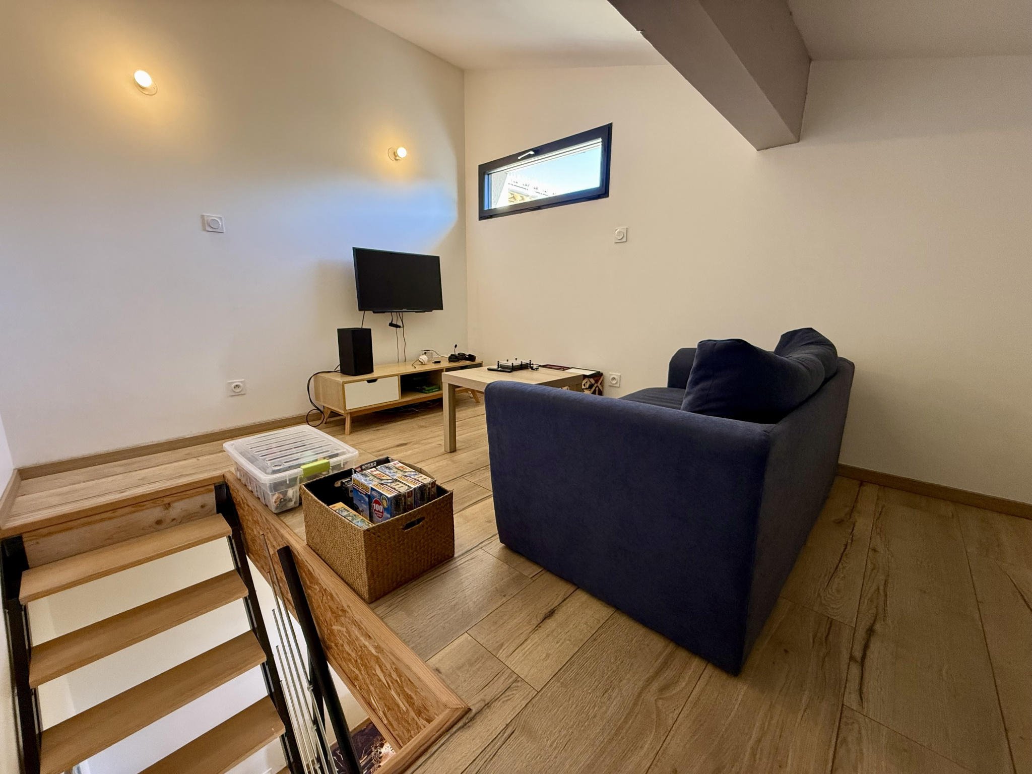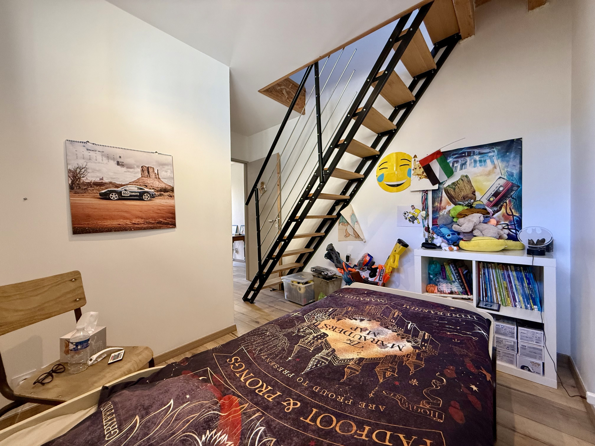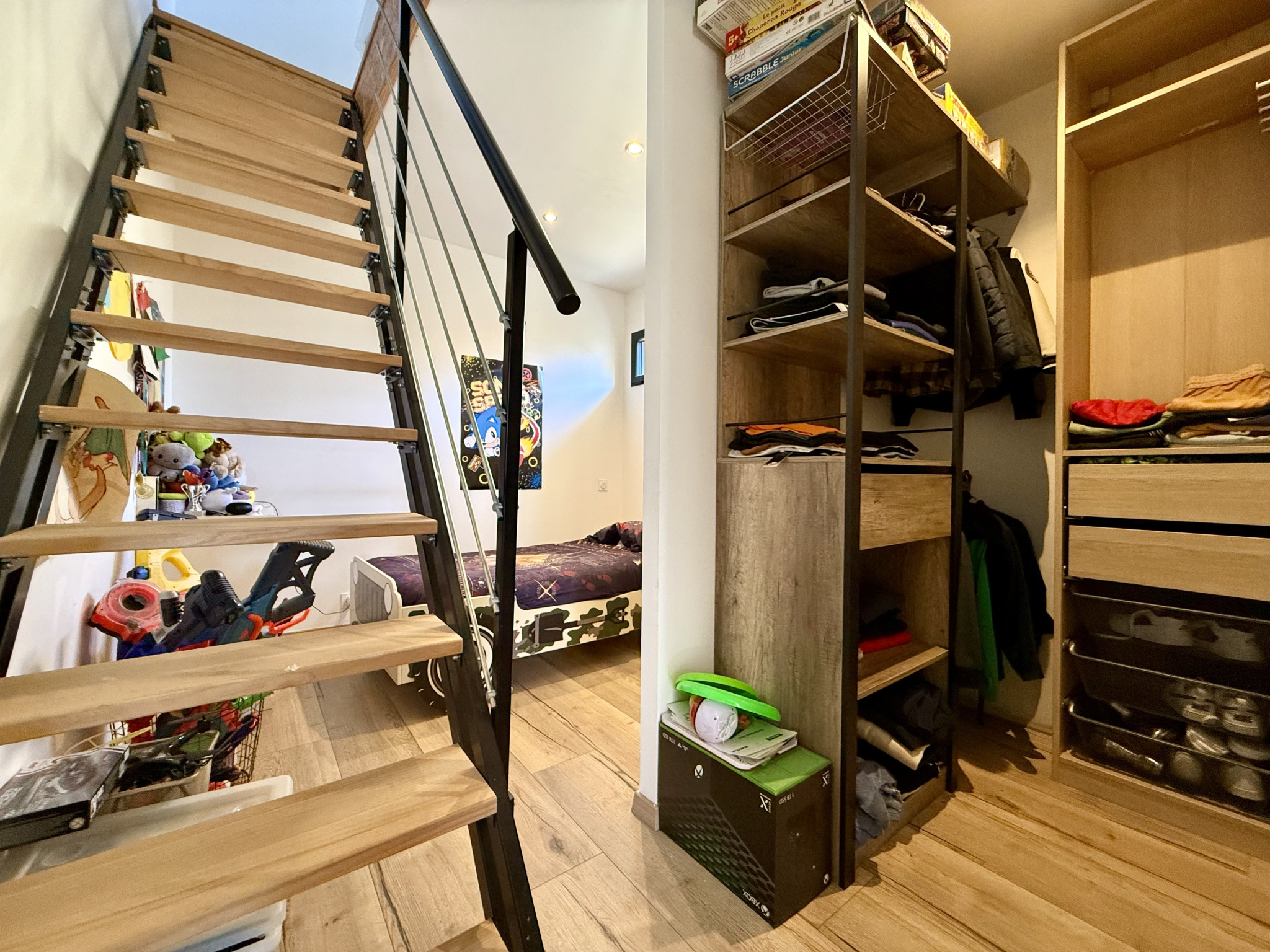 Deux chambres avec mezzanine, idéales pour enfants, bureau ou espace détente.