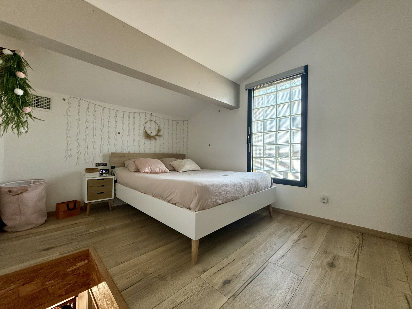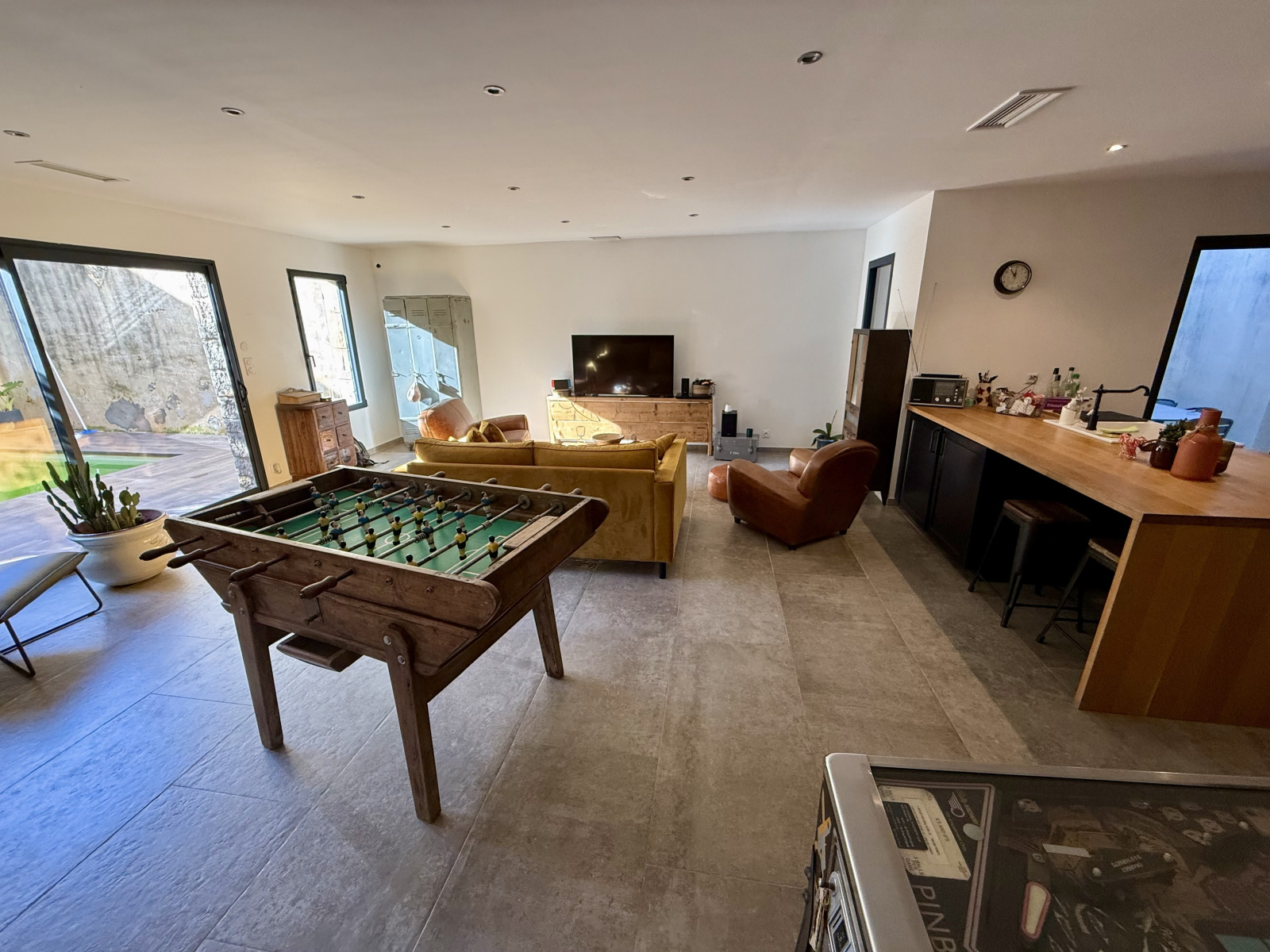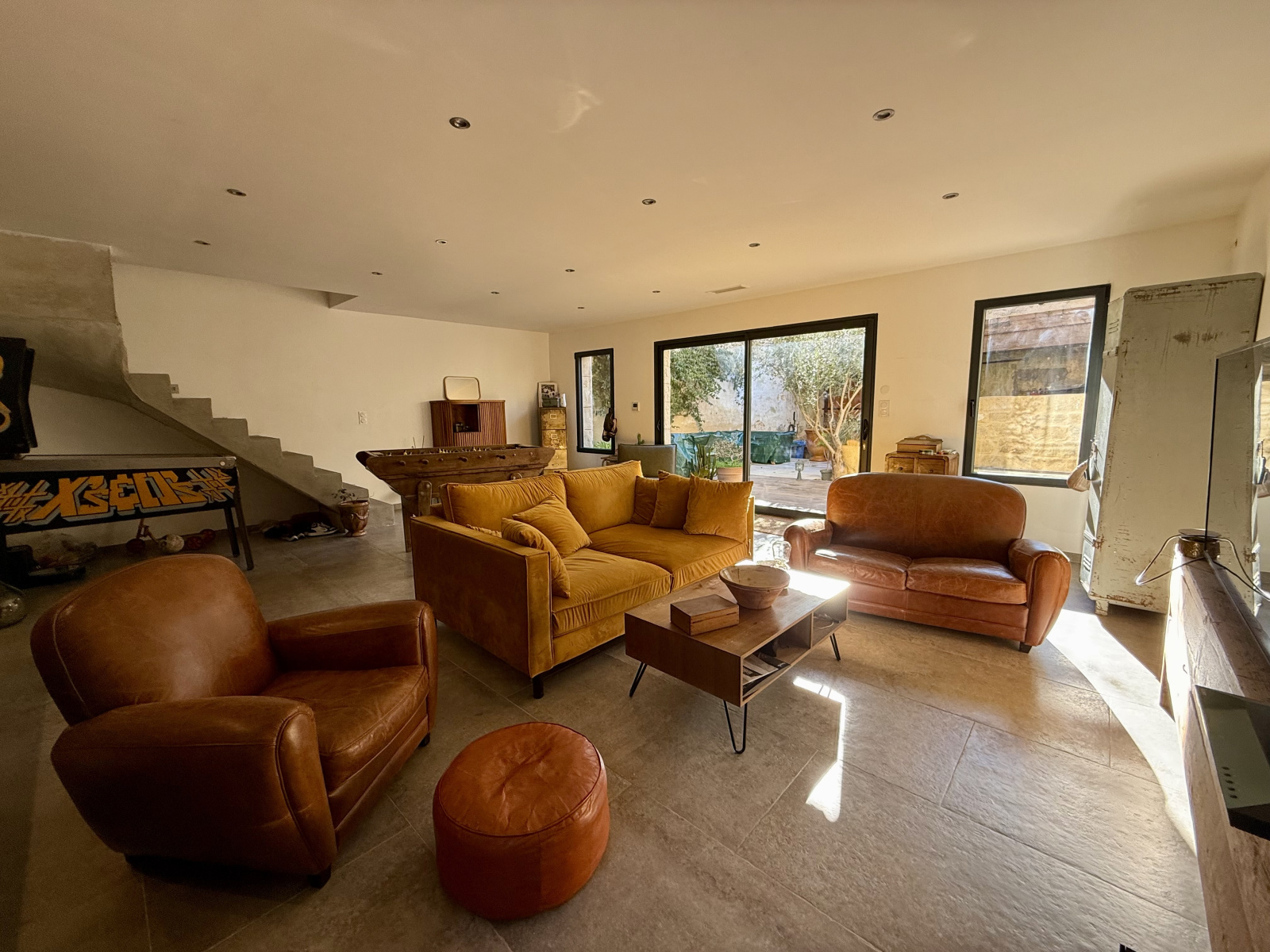 Vous découvrirez un bel espace de vie comprenant salon/séjour et cuisine ouverte, baigné de lumière, avec un accès direct à un patio intérieur qui apporte une atmosphère intimiste et conviviale.