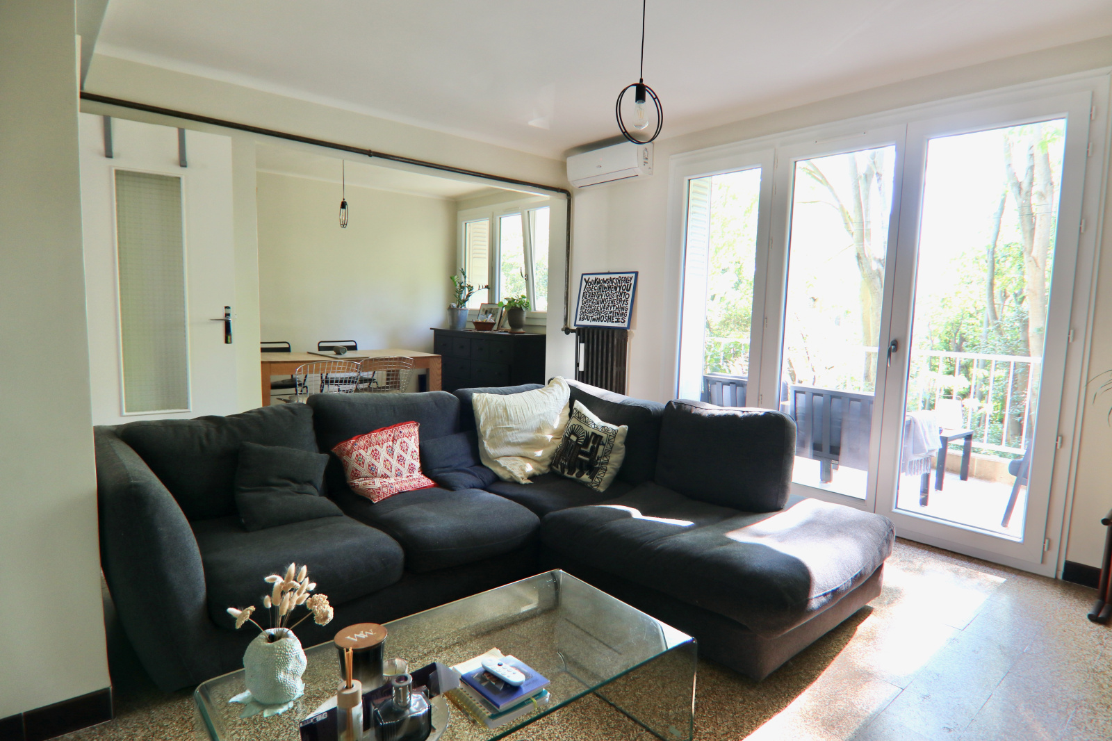 Montpellier (34000)ARCEAUX/ Carré du Roi, coup de coeur assuré pour ce bel appartement T2 bis traversant de 62,73 m2 situé au deuxième étage d'une petite résidence en bordure d'un parc arboré. Entièrement rénové et contemporain, il dispose d'un séjour double ouvrant sur une terrasse ensoleillée de près de 9 m2 avec vue sur parc et au calme, d'une spacieuse cuisine, d'une chambre avec placards, d'une salle de de bains ajourée et de wc séparés. Possibilité de recréer une seconde chambre ou un bureau. Cave individuelle et stationnement libre dans la résidence sécurisée. Emplacement idéal à proximité des commerces, des transports (tram 1 et 4 et bus) de l'Ecusson, et du jardin des plantes. Une exclusivité de l'Agence Bazille Arceaux.