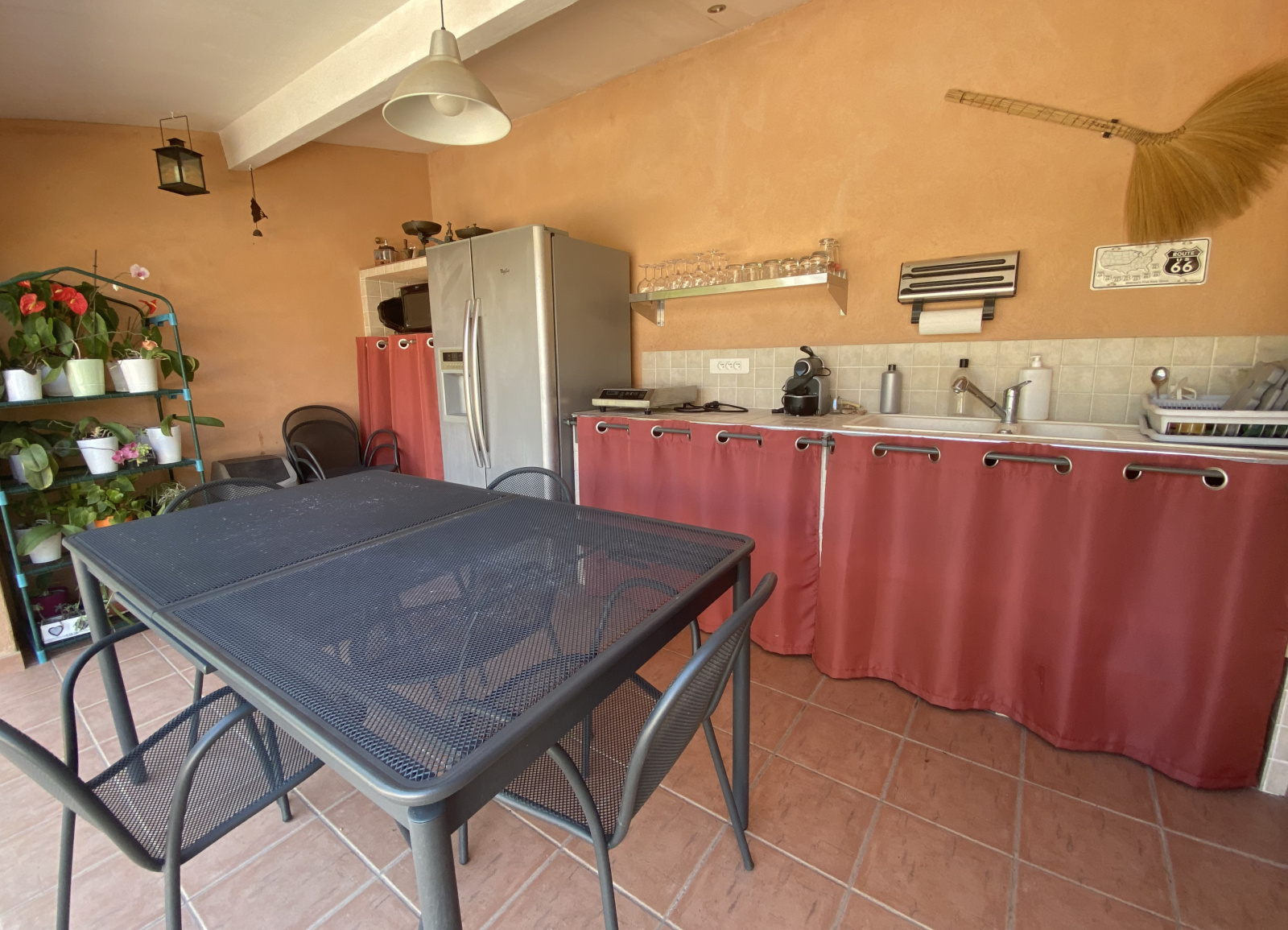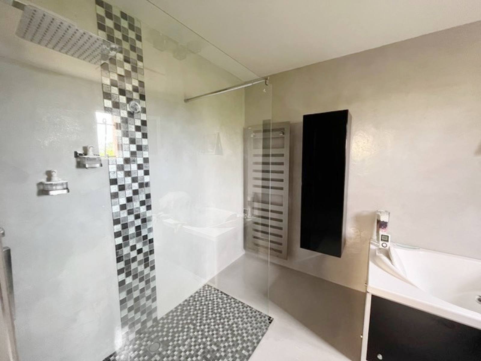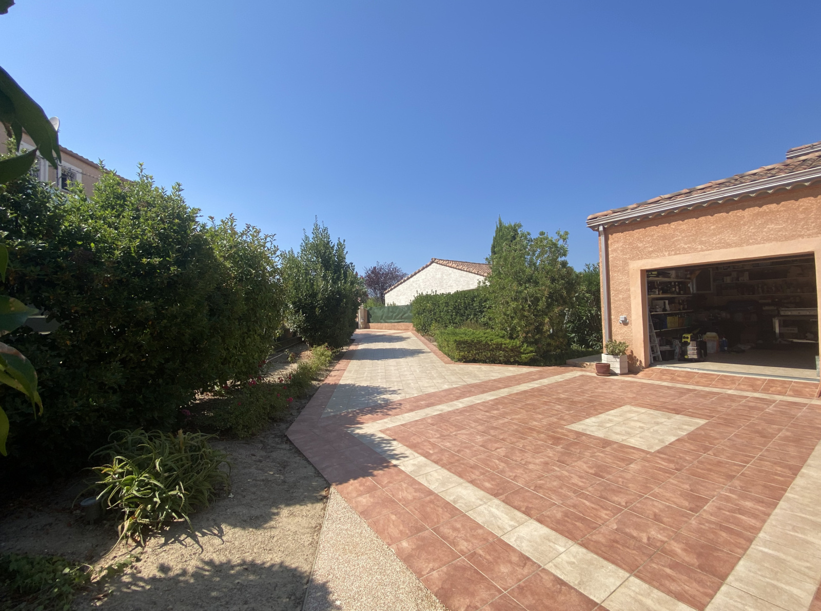Climatisation gainable dans toutes les pièces, panneaux solaires, garage carrelé 20 m2 avec tristet, prise pour voiture électrique, visiophone, double vitrage, volets roulants électriques, et surtout une maison très bien entretenue.