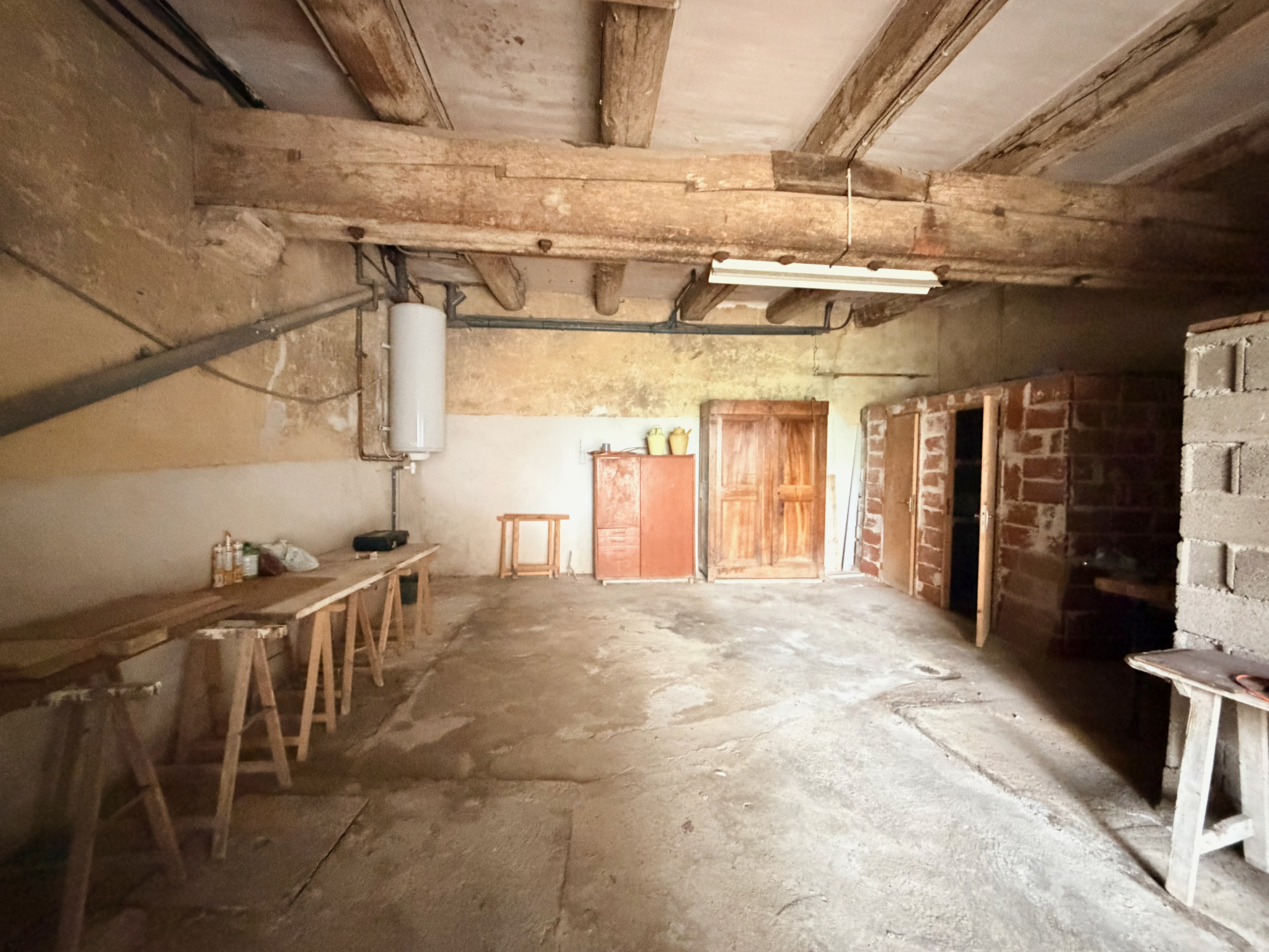 Lumineuse maison de village de 100 m2 comprenant au rez-de-chaussée une cour de 40 m2 accessible depuis la rue en voiture et un grand garage de 51 m2; au premier étage, un lumineux séjour de 40 m2 avec accès direct à une terrasse plein sud de 43 m2, une cuisine équipée (possibilité US), et au dernier niveau, trois chambres, une salle de bains avec wc.