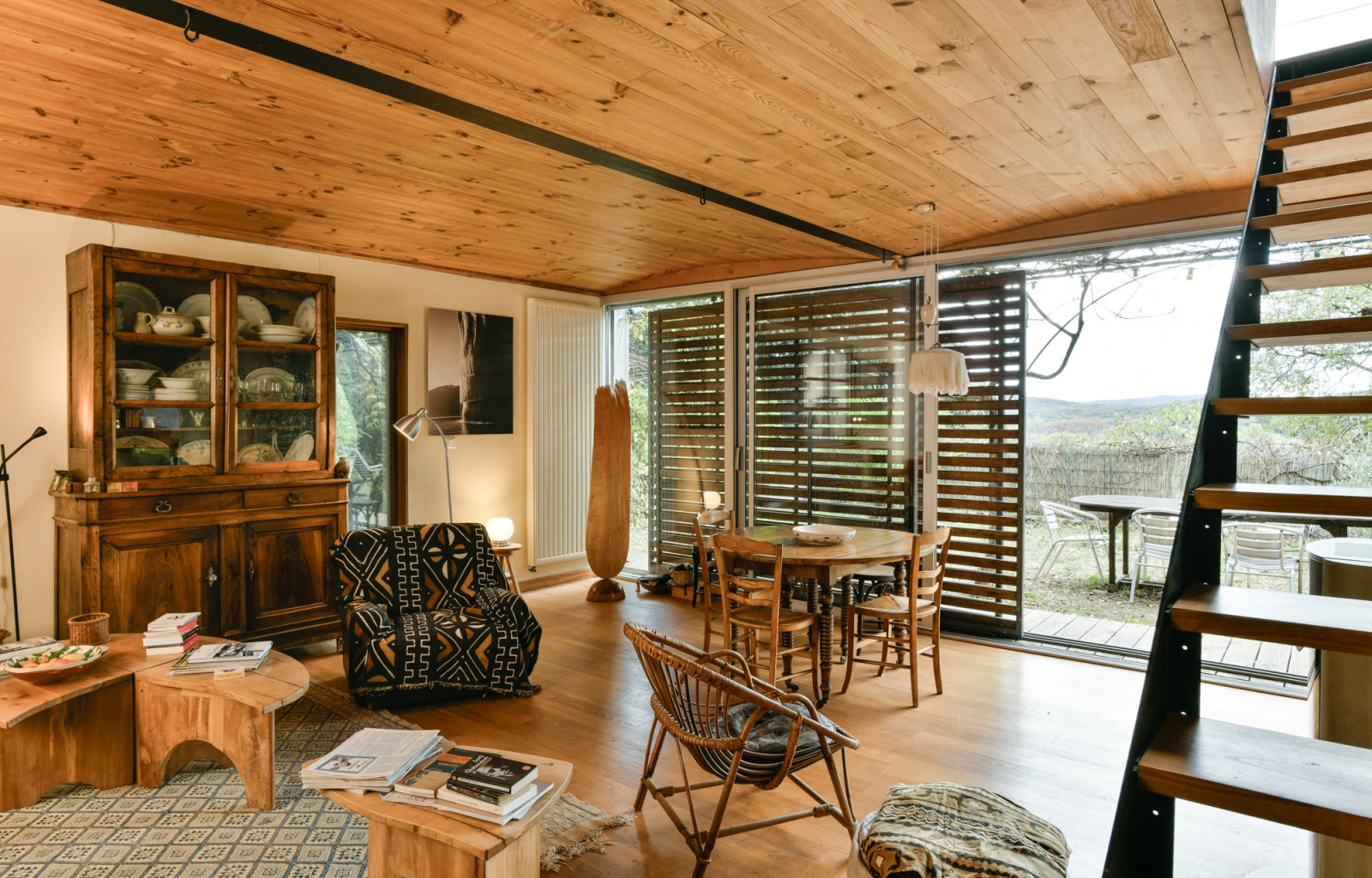Ganges (34190)Sur les hauteurs de Ganges, à deux pas du centre ville, sur un îlot de verdure avec vue imprenable, venez découvrir cette maison atypique ossature métallique et bois avec de grandes baies vitrées ouvrant sur la nature, offrant environ 160m² de surface habitables plus un atelier indépendant de 12m², comprenant au rez de jardin un vaste et lumineux séjour avec poêle à granulés, une belle cuisine avec chaufferie et cave, une chambre et une salle d'eau/wc. A l'étage : une suite parentale de plus de 40m² avec un espace bureau/lecture, un dressing, une salle de bains et wc ainsi qu'une belle terrasse en bois côté Ouest. Une autre chambre avec salle d'eau et wc, un coin cuisine/salon, une terrasse en bois à l'Est avec un accès indépendant, idéal pour recevoir famille ou amis. Terrain d'environ 1257m² arboré avec accès direct au sentier de randonnée pédestre. Annonce rédigée et publiée par un agent mandataire Cédric ATHANASSARAS, EI, RSAC de Montpellier 450584 719 Les informations sur les risques auxquels ce bien est exposé sont disponibles sur le site Géorisques : www.georisques.gouv.fr.