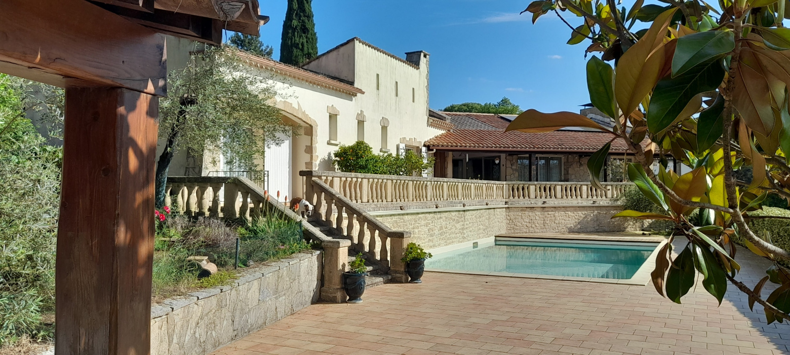 Ganges (34190)Sur les hauteurs, vue dégagée, à deux pas des commerces, spacieuse et lumineuse villa offrant 219m² de surface habitable sur 3078m² de terrain arborés, piscine 6x11 sécurisée et son pool house, grande terrasse. La maison est composé d'un joli hall d'entrée, un spacieux séjour de 49m² avec insert, une cuisine équipée avec cellier, 2 chambres, un dressing, une grande salle de bains et douche. En rez de chaussée 2 chambres plus une salle d'eau, un grand garage, une buanderie, des caves et un vide sanitaire. Pompe à chaleur plus 20 m² de panneaux photovoltaiques. Annonce rédigée et publiée par un agent mandataire Cédric ATHANASSARAS, EI, RSAC de Montpellier 450584 719 Les informations sur les risques auxquels ce bien est exposé sont disponibles sur le site Géorisques : www.georisques.gouv.fr