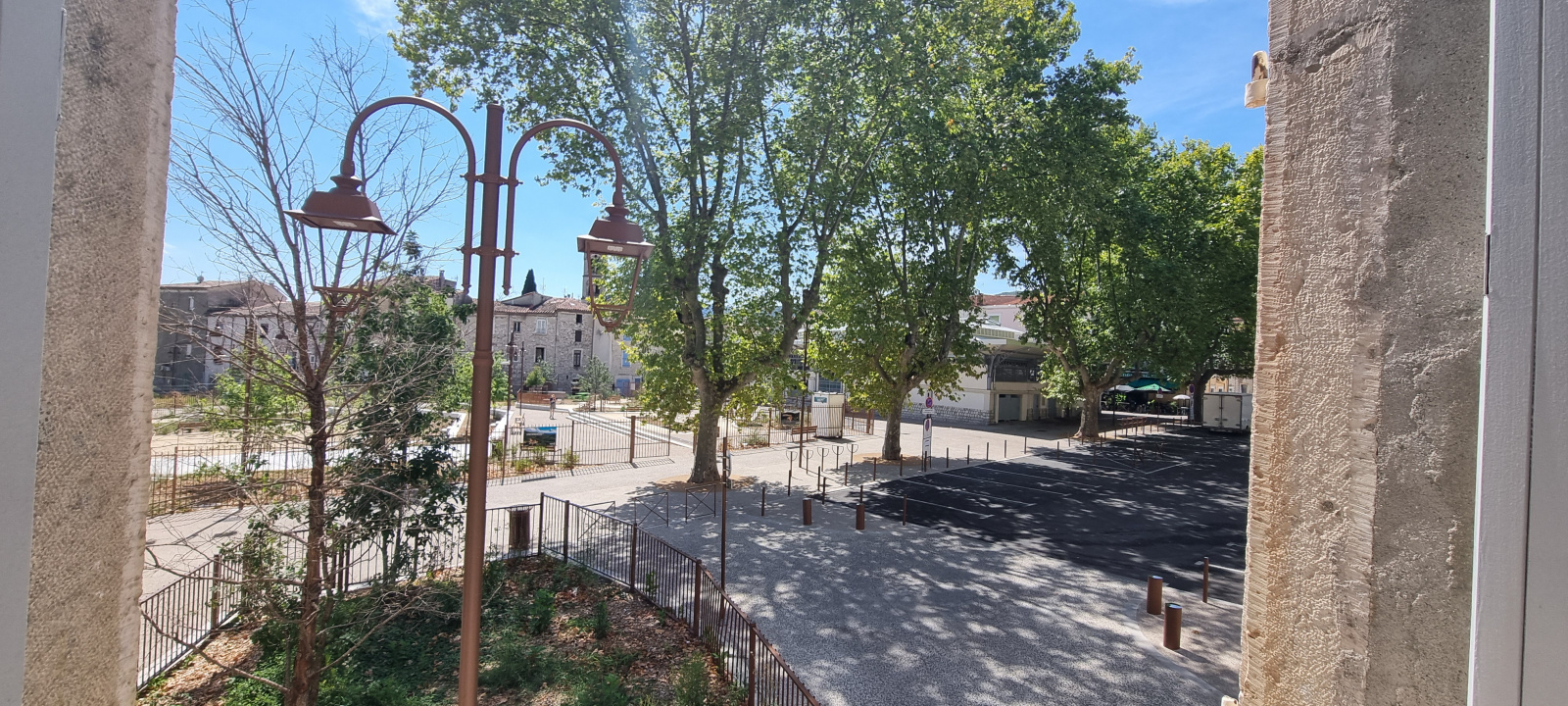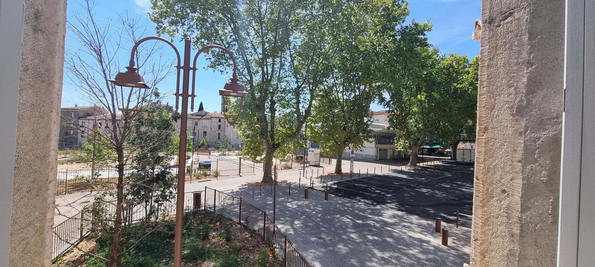 1er étage : Un appartement de type 2 loué 363€/mois (dont 11€ tom et 10 € ménage) de 39m² donnant sur la place.