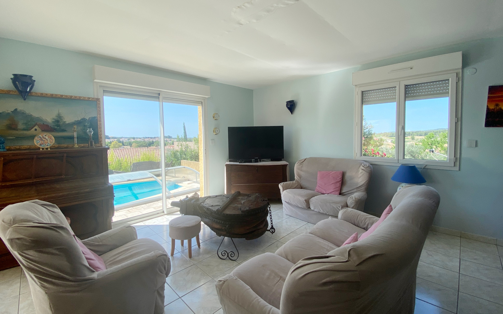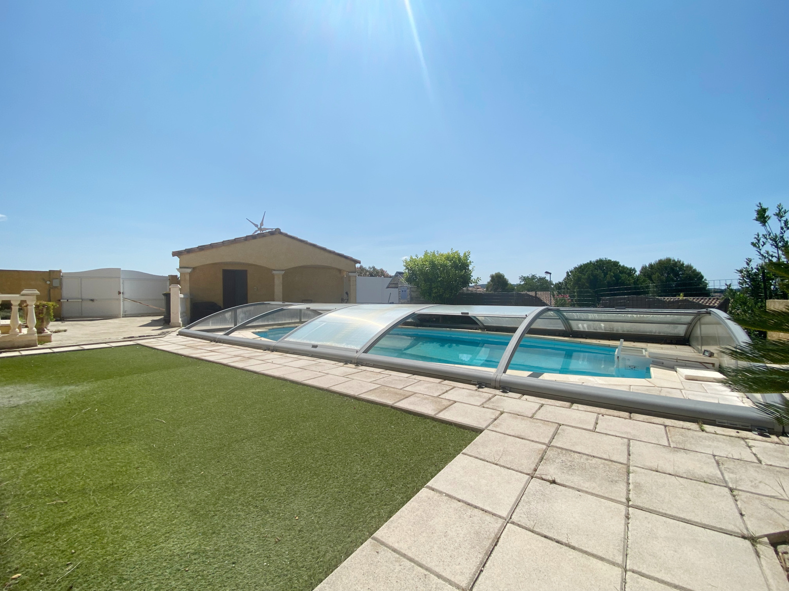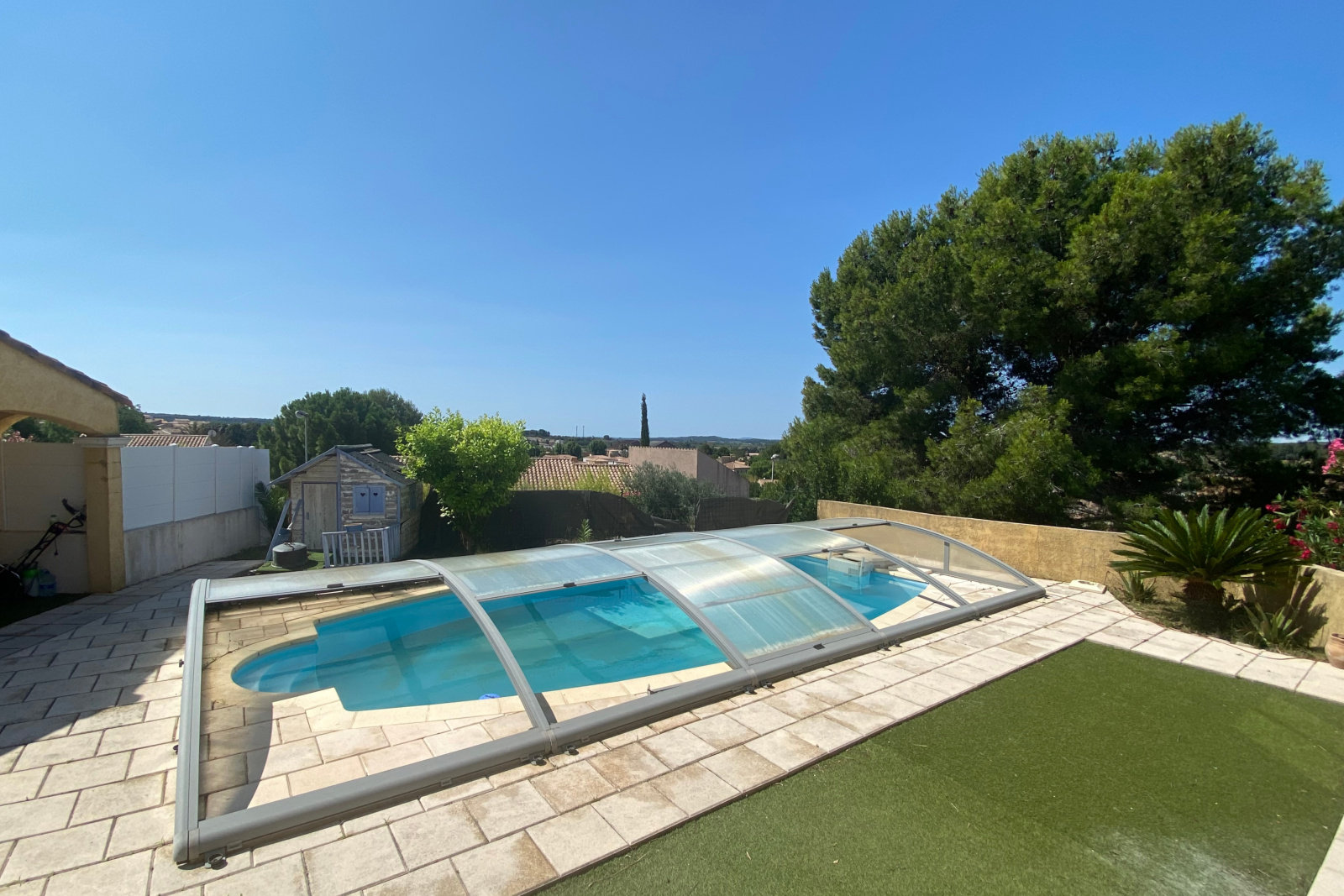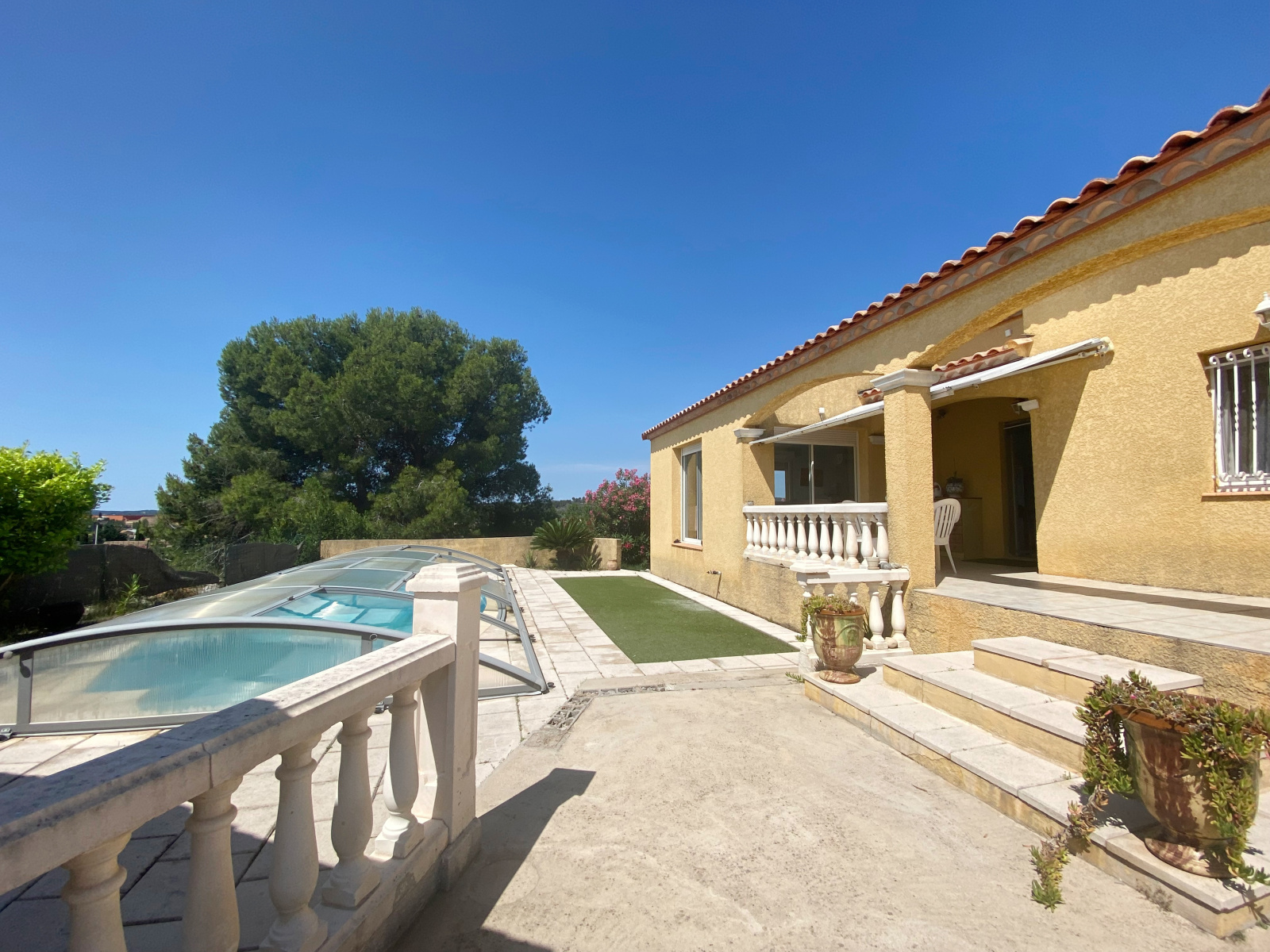 Villeveyrac (34560)Dans une impasse calme et résidentielle de Villeveyrac, l’Agence Bazille a sélectionné pour vous cette belle villa plain-pied indépendante de 116 m2 habitables avec piscine, dépendance et belle vue dégagée.