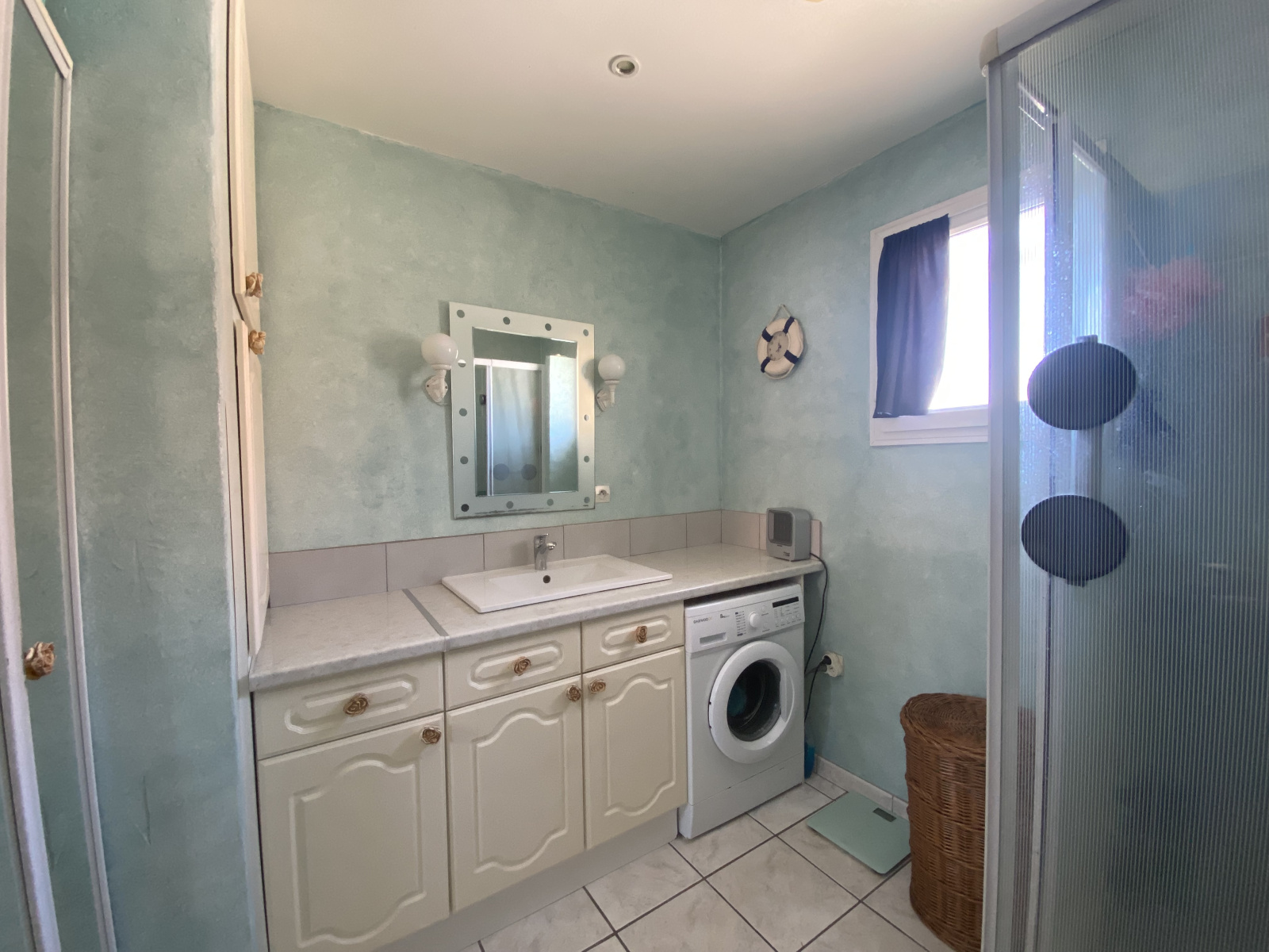 La villa se compose d’une pièce à vivre lumineuse de 53 m2 avec sa cuisine ouverte et ses deux agréables terrasses, trois chambres spacieuses avec placard, deux salles d’eau, un wc séparé et une dépendance de 20 m2 avec petit jardin privatif et climatisation permettant de recevoir famille ou amis.